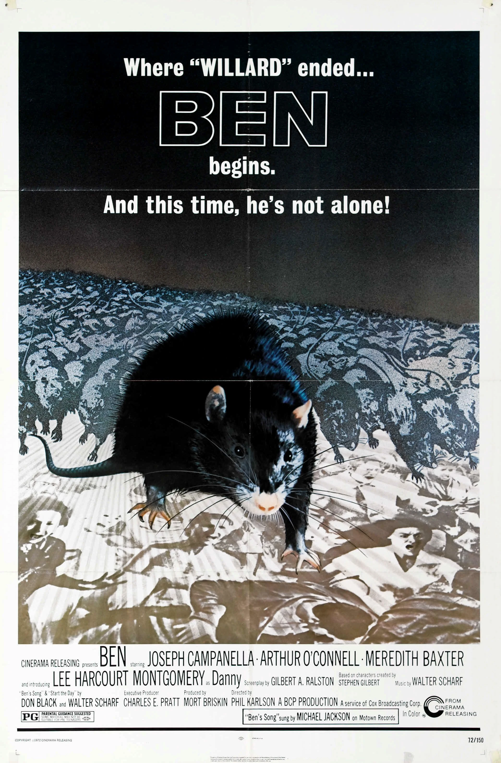 Ben is a 1972 horror film about a young boy and his pet rat, Ben. The film is a sequel to the 1971 film Willard. Directed by Phil Karson and starring Lee Montgomery, Meridith Baxter and Rosemary Murphy. The film is known for its sentimental theme song performed by Michael Jackson.