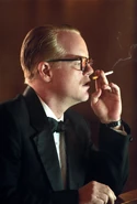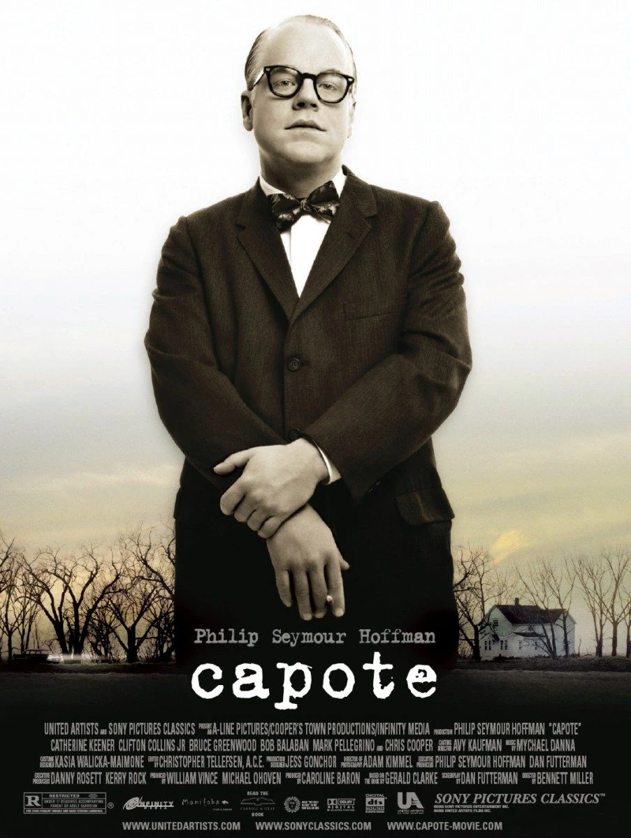 Capote is a 2005 biographical film about Truman Capote, following the events during the writing of Capote's non-fiction book "In Cold Blood". The movie was based on Gerald Clarke's biography "Capote". The film stars Philip Seymour Hoffman, Catherine Keener, Chris Cooper, Bruce Greenwood, Clifton Collins, Jr. and Amy Ryan. It was released September 30, 2005, to coincide with Truman Capote's 81st birthday.
