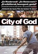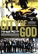 City of God is a 2003 Brazilian crime drama film directed by Fernando Meirelles, released in its home country in 2002 and worldwide in 2003. The story was adapted by Braulio Mantovani from the 1997 novel of the same name written by Paulo Lins, but the plot is loosely based on real events. The cast includes Alexandre Rodrigues, Leandro Firmino da Hora, Jonathan Haagensen, Douglas Silva, Alice Braga and Seu Jorge. Most of the actors were, in fact, residents of favelas such as Vidigal and the Cidade de Deus itself.