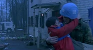 A German father's soccer-playing son is hit by a car and dies. The father donates the boy's red jacket to charity, where it ends up in war-torn Sarajevo. The boy's parents are killed, and he almost is. Some UN soldiers find him, and send him to a hospital in Germany. He escapes the hospital, is hit by a car (but unhurt). The driver reads the tag inside the jacket and "returns" the boy to the grieving father.
