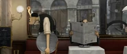 A disheveled man picks up litter on a street using a stick with a nail on its end. In a bar, a cigar-smoking swell reads the financial section of a newspaper. The vagabond enters, the upstanding man ignores a request for alms, the hobo exits. The gent can't find his wallet, so he orders espresso after espresso as he ponders what to do. The vagabond returns, a napping nun at the next table gives him money, and the gent considers pilfering her purse. As the evening drags on, the bill for espresso mounts. A detective tacks up a wanted poster. Among the waiter, detective, nun, vagabond, and gent-in-a-jam, can luck or kindness find their way into the bar?