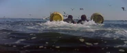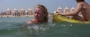 In a warmy night on Amity Island, a small community whose business is its beaches, a young woman named Chrissie Watkins goes skinny dipping and gets violently pulled under while treading water. The next morning, Chief Martin Brody and Deputy Hendricks discover her remains. When the medical examiner informs Brody that Chrissie was killed by a shark, his first inclination is to close the beaches to swimmers. This doesn't sit well with Mayor Larry Vaughn and several of the local businessmen. Brody backs down to his regret as that weekend a young boy named Alex Kintner is killed by the predator. The dead boy's mother puts out a bounty on the shark and Amity is soon swamped with amateur hunters and fisherman hoping to cash in on the reward. A local fisherman with much experience hunting sharks, Quint, offers to hunt down the creature for a hefty fee. Soon, Quint, Brody and Matt Hooper from the Oceanographic Institute are at sea hunting the Great white shark. As Brody succinctly surmises after their first encounter with the creature, Quint's going to need a bigger boat.