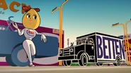 Police chase an armed criminal in a version of Los Angeles comprised entirely of corporate logos.