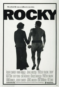 Rocky is a 1976 American sports drama film directed by John G. Avildsen, written by and starring Sylvester Stallone. It tells the rags to riches American Dream story of Rocky Balboa, an uneducated, kind-hearted working class Italian-American boxer, working as a debt collector for a loan shark in the slums of Philadelphia. Rocky, a small-time club fighter, gets a shot at the world heavyweight championship.