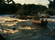 September 1914, news reaches the colony German Eastern Africa that its motherland is at war, so Reverend Samuel Sayer became a hostile foreigner; German imperial troops burn down his mission, driving him mad- shortly after his well-educated, sister Rose Sayer buries him and leaves by the only available transport, the river steamboat 'African Queen' of grumpy Charlie Allnut. She is determined to find a way to do their bit for the British war effort (and revenge her brother) and aims high as God is obviously on their side: construct their own equipment, a torpedo and the converted steamboat, to take out a huge German warship, the Louisa, which is hard to find on the giant lake but she presses till Charlie accepts to steam up the Ulana, about to brave a German fort, raging rapids, very bloodthirsty parasites and the endlessly branching stream which seems to go nowhere but impenetrable swamps. Despite fierce rows and moral antagonism between a bossy devout abstentionist and a free-spirited libertine drunk loner, the two bachelors grow closer to each-other as their quest continues on.