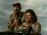 The African Queen is a 1951 adventure film adapted from the 1935 novel of the same name by C. S. Forester. The film was directed by John Huston and produced by Sam Spiegel and John Woolf. The screenplay was adapted by James Agee, John Huston, John Collier and Peter Viertel. It was photographed in Technicolor by Jack Cardiff and had a music score by Allan Gray. The film stars Humphrey Bogart, Katharine Hepburn with Robert Morley, Peter Bull, Walter Gotell, Richard Marner and Theodore Bikel.