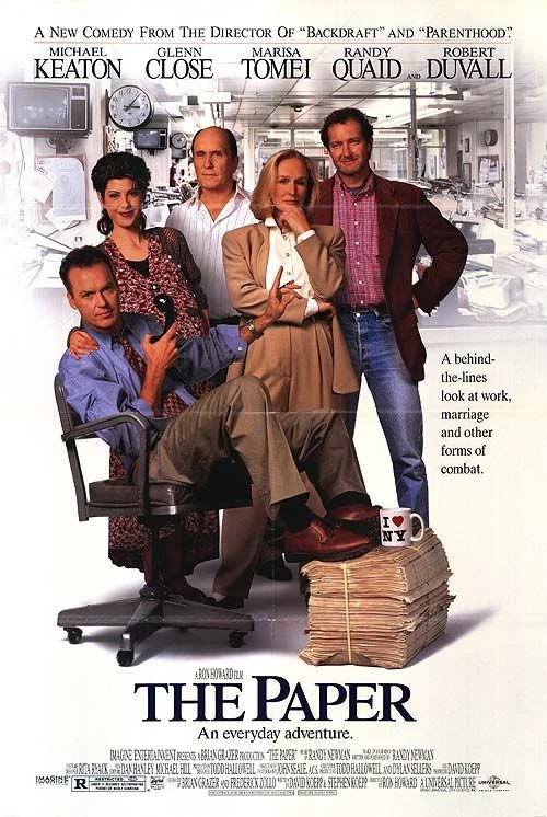 The Paper is a 1994 American comedy-drama film directed by Ron Howard and starring Michael Keaton, Glenn Close, Marisa Tomei, Randy Quaid, Jason Robards and Robert Duvall. The screenplay was written by brothers, David and Stephen Koepp.