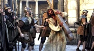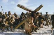 A depiction of the last twelve hours in the life of Jesus of Nazareth, on the day of his crucifixion in Jerusalem. The story opens in the Garden of Olives where Jesus has gone to pray after the Last Supper. Betrayed by Judas Iscariot, is arrested and taken back within the city walls of Jerusalem where leaders of the Pharisees confront him with accusations of blasphemy and his trial results in a condemnation to death. Jesus is brought before Pontius Pilate, the Roman Governor of Palestine, for his sentencing, who struggles on the right course trying to avoid political conflict. Jesus is handed over to the Roman soldiers and is brutally flagellated. Bloody and unrecognizable, he is brought back before Pilate who, once again, presents him to the thirsty crowd--assuming they will see that Jesus has been punished enough. The crowd, however, is not satisfied. Thus, Pilate washes his hands of the entire dilemma, ordering his men to do as the crowd wishes. Whipped and weakened, Jesus is presented with the cross and is ordered to carry it through the streets of Jerusalem, all the way up to Golgotha. There, more corporal cruelty takes place as Jesus is nailed to the cross--suffering.