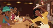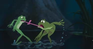 A modern day retelling of the classic story The Frog Prince. The Princess and the Frog finds the lives of arrogant, carefree Prince Naveen and hardworking waitress Tiana crossing paths. Prince Naveen is transformed into a frog by an evil voodoo magician and Tiana, following suit, upon kissing the amphibian royalty. With the help of a trumpet-playing alligator, a Cajun firefly, and an old blind lady who lives in a boat in a tree, Naveen and Tiana must race to break the spell and fulfill their dreams.